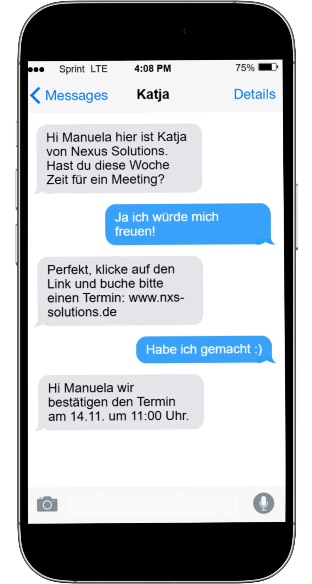 Erstellen Sie Textgespräche mit dem Ziel, gebuchte Termine in Kalender zu platzieren – ganz ohne menschliche Interaktion, wenn Sie es wünschen.
